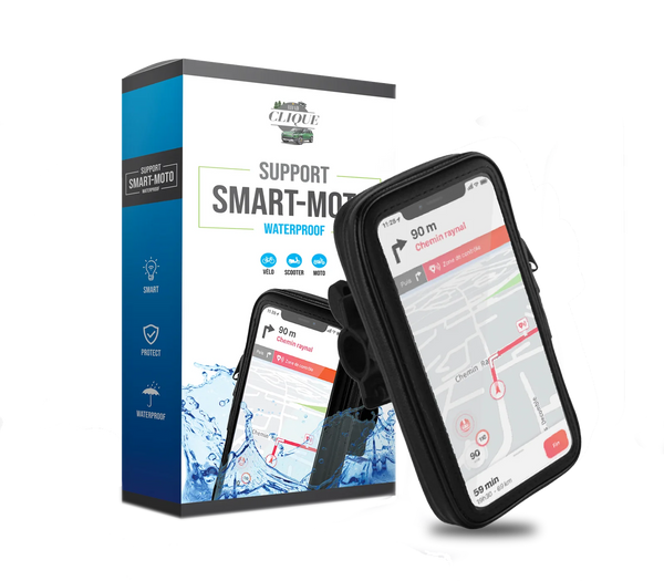 En pleine montagne sous la neige ou lors de bourasques pluvieuses, le support Smart-Moto "WATERPROOF" a été conçu pour protéger votre smartphone quelquesoit la météo.